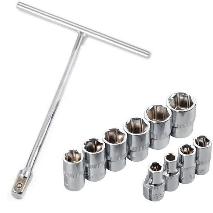 10 х вложки с размери: 8 мм, 9 мм, 10 мм, 11 мм, 12 мм, 13 мм, 14 мм, 16 мм, 17 мм, 19 мм.