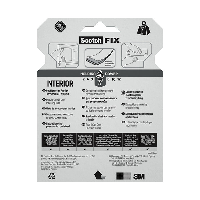 Двойнолепящо тиксо 3M Scotch FIX 19мм х 1.5м до 7кг Интериор